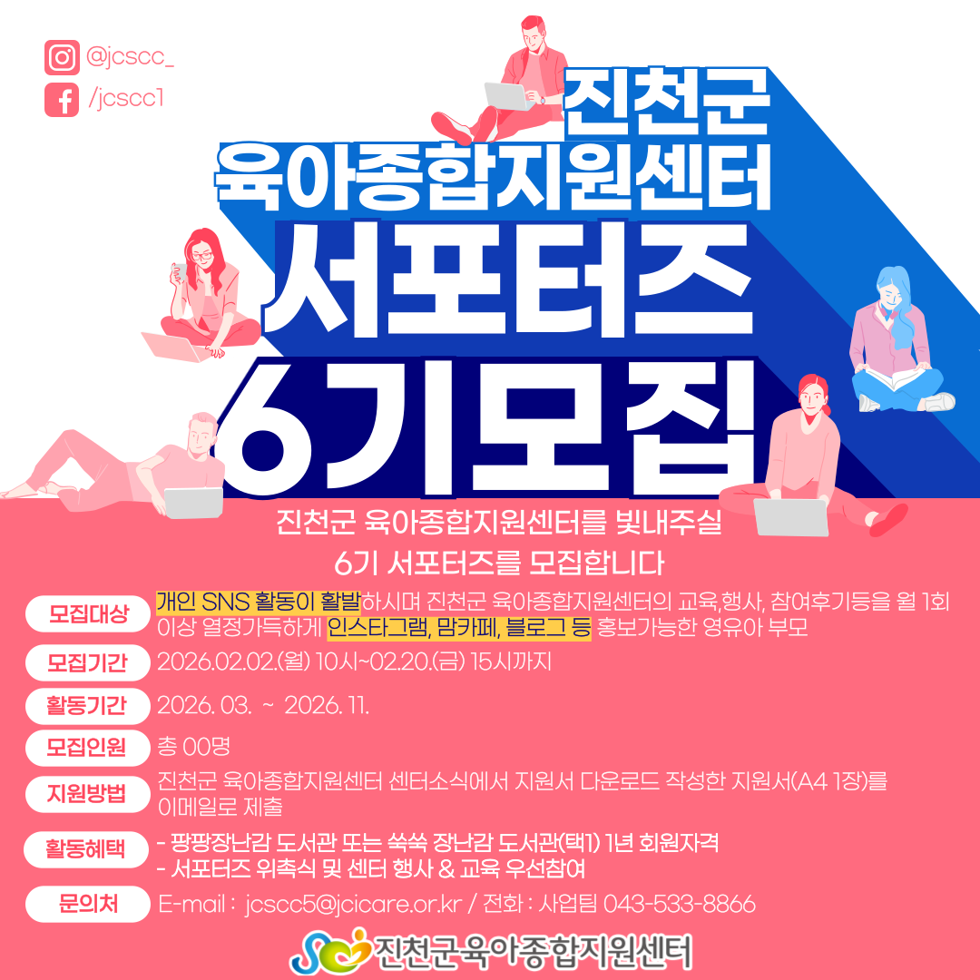 ¾È³çÇϼ¼¿ä! ÁøÃµ±º À°¾ÆÁ¾ÇÕÁö¿ø¼¾ÅÍ¿¡¼´Â 2026³âµµ 6±â ¼Æ÷ÅÍÁ ¸ðÁýÇÕ´Ï´Ù.