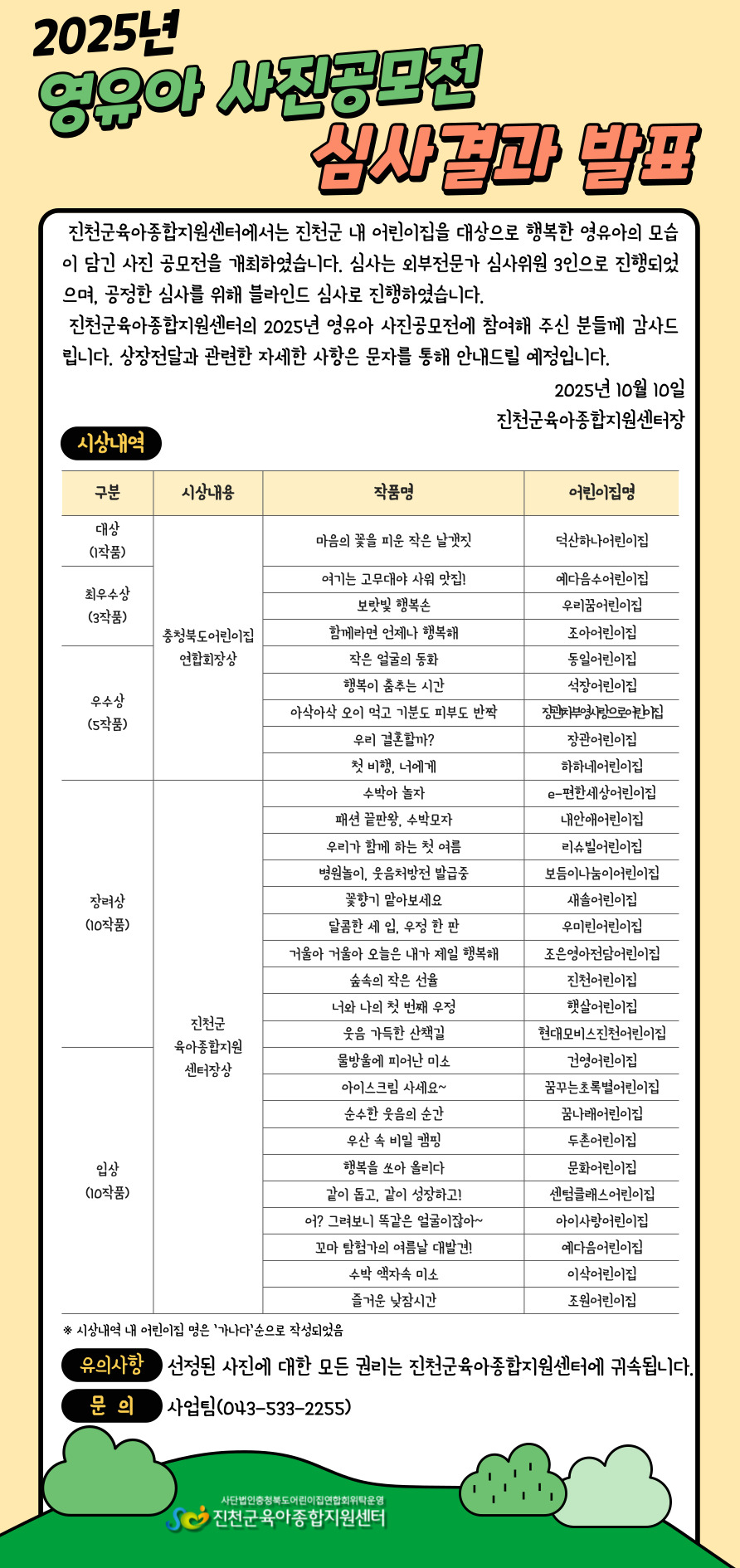 [ÁøÃµ±ºÀ°¾ÆÁ¾ÇÕÁö¿ø¼¾ÅÍ] 2025 ¿µÀ¯¾Æ »çÁø°ø¸ðÀü ½É»ç °á°ú °ø°í