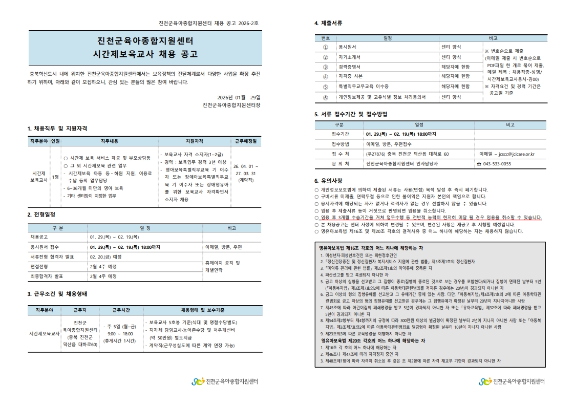 [ä¿ë] ÁøÃµ±ºÀ°¾ÆÁ¾ÇÕÁö¿ø¼¾ÅÍ ½Ã°£Á¦ º¸À°±³»ç ä¿ë °ø°í