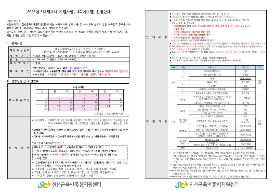 2026³â [´ëü±³»ç Áö¿ø»ç¾÷] 4ȸ±â(4¿ù) ½Åû¾È³»