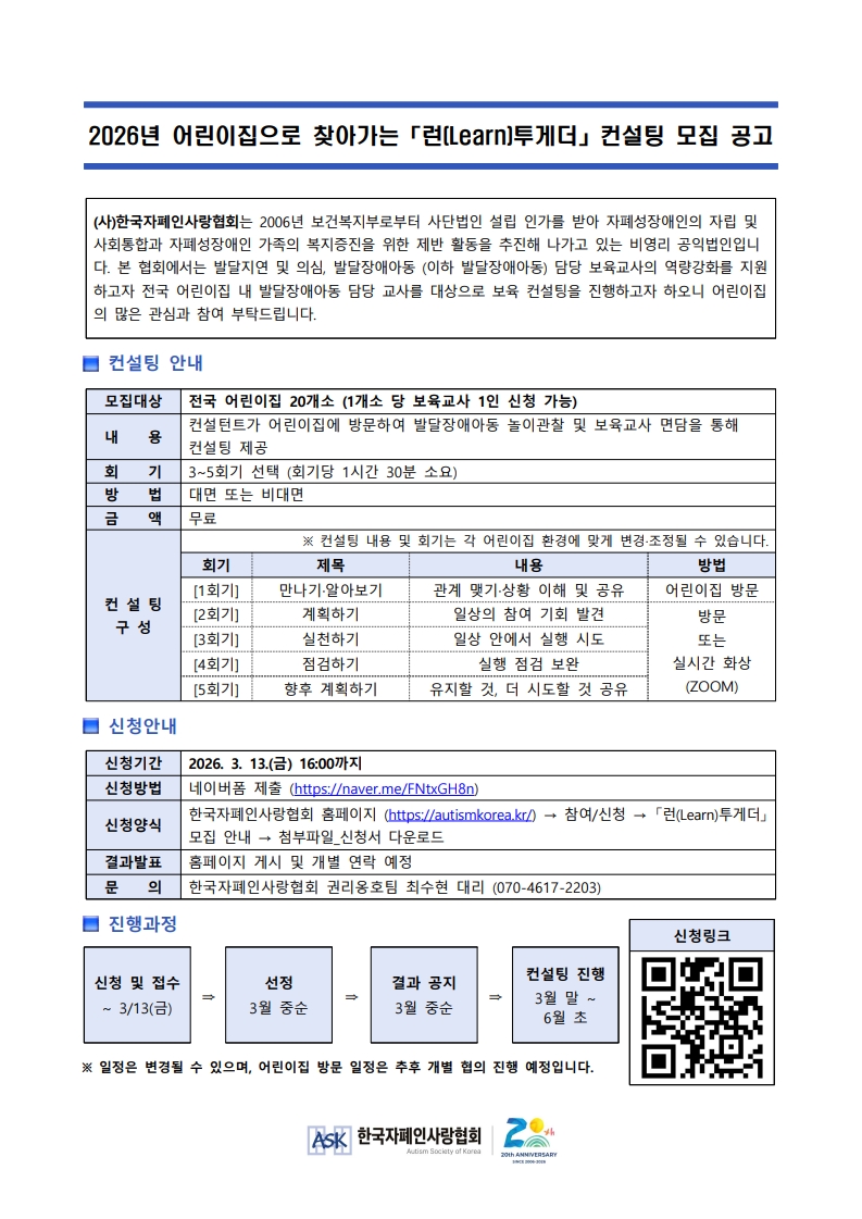 2026³â ¾î¸°ÀÌÁýÀ¸·Î ã¾Æ°¡´Â [·±[Learn]Åõ°Ô´õ] ÄÁ¼³ÆÃ ¸ðÁý °ø°í