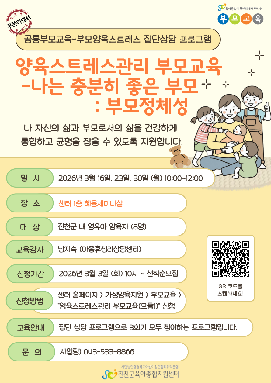 | ±âŸ»çÇ× | *Áý´Ü»ó´ã ÇÁ·Î±×·¥À¸·Î 3ȸ±â ¸ðµÎ Âü¿©ÇÏ´Â ±³À°ÀÔ´Ï´Ù. *ºÎ¸ð±³À°À¸·Î ¿µÀ¯¾Æ Àڳฦ µ¿¹ÝÇÏ½Ç ¼ö ¾ø½À´Ï´Ù, *°øÅëºÎ¸ð±³À° ÄíÆùÀ̺¥Æ® ´ë»ó ºÎ¸ð±³À°ÀÔ´Ï´Ù. |