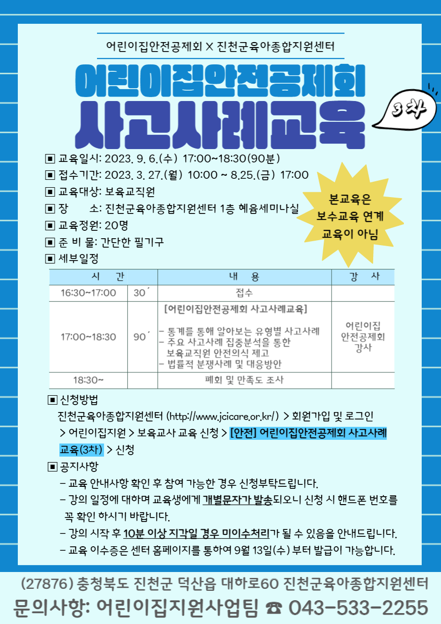 | [¾ÈÀü] ¾î¸°ÀÌÁý¾ÈÀü°øÁ¦È¸ »ç°í»ç·Ê±³À° (3Â÷) | |||