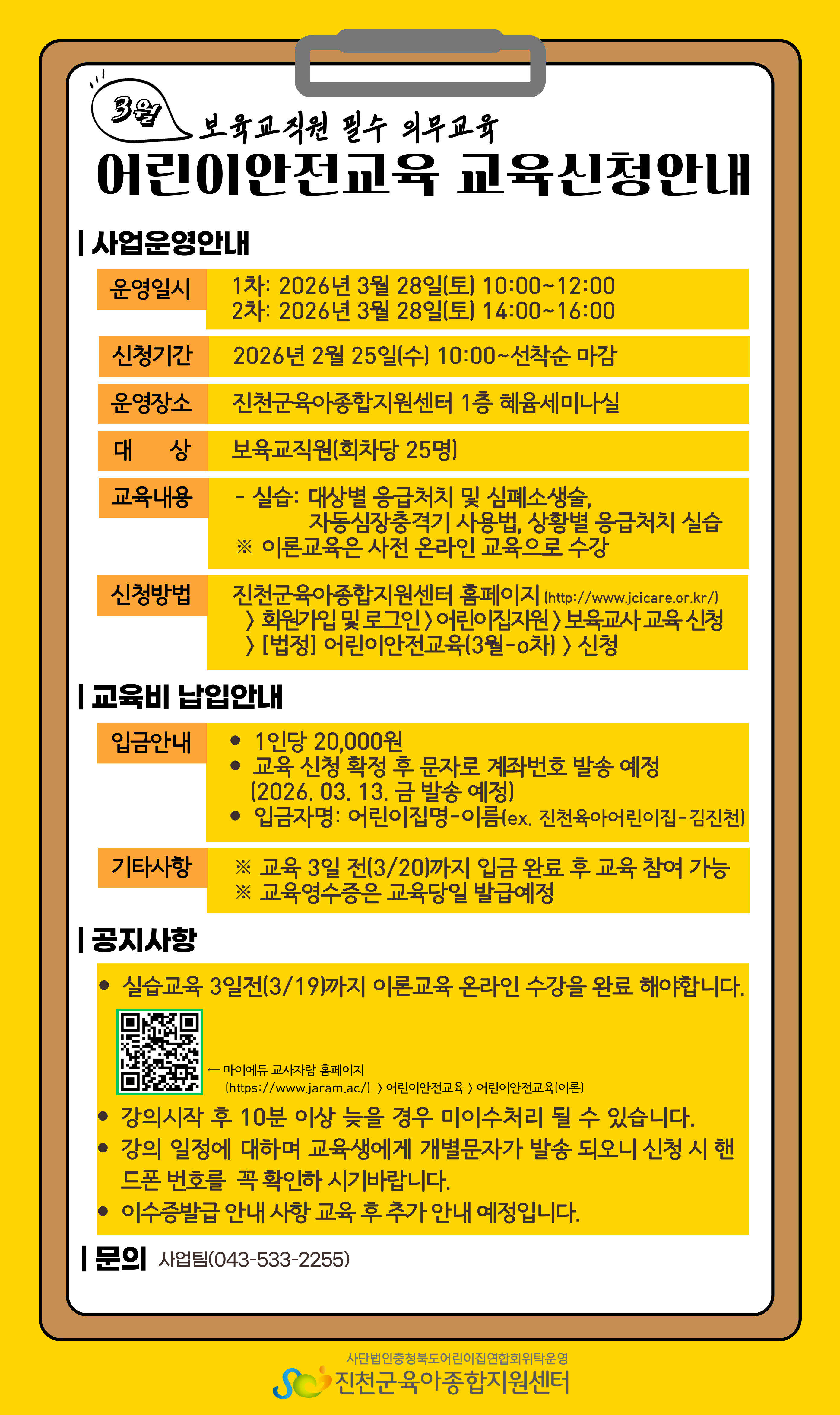 | ±âŸ»çÇ× | ¡Ø ±³À° 3ÀÏÀü(3/20)±îÁö ÀÔ±Ý ¿Ï·á ÈÄ ±³À° Âü¿© °¡´É ¡Ø ±³À° ¿µ¼öÁõÀº ±³À°´çÀÏ ¹ß±Þ ¿¹Á¤ |
