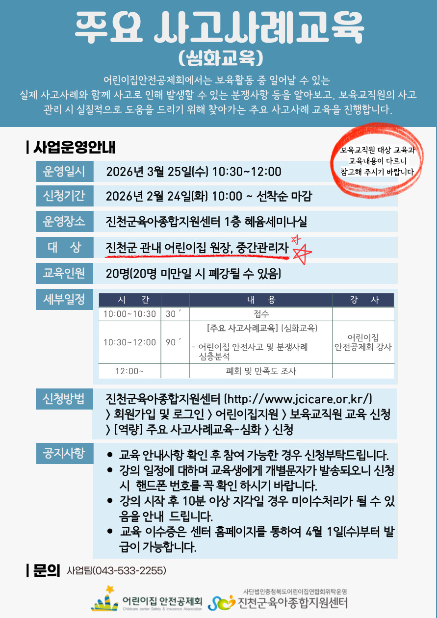 | [¾ÈÀü] ¾î¸°ÀÌÁý¾ÈÀü°øÁ¦È¸-ÁÖ¿ä »ç°í»ç·Ê±³À°(½Éȱ³À°) | |||