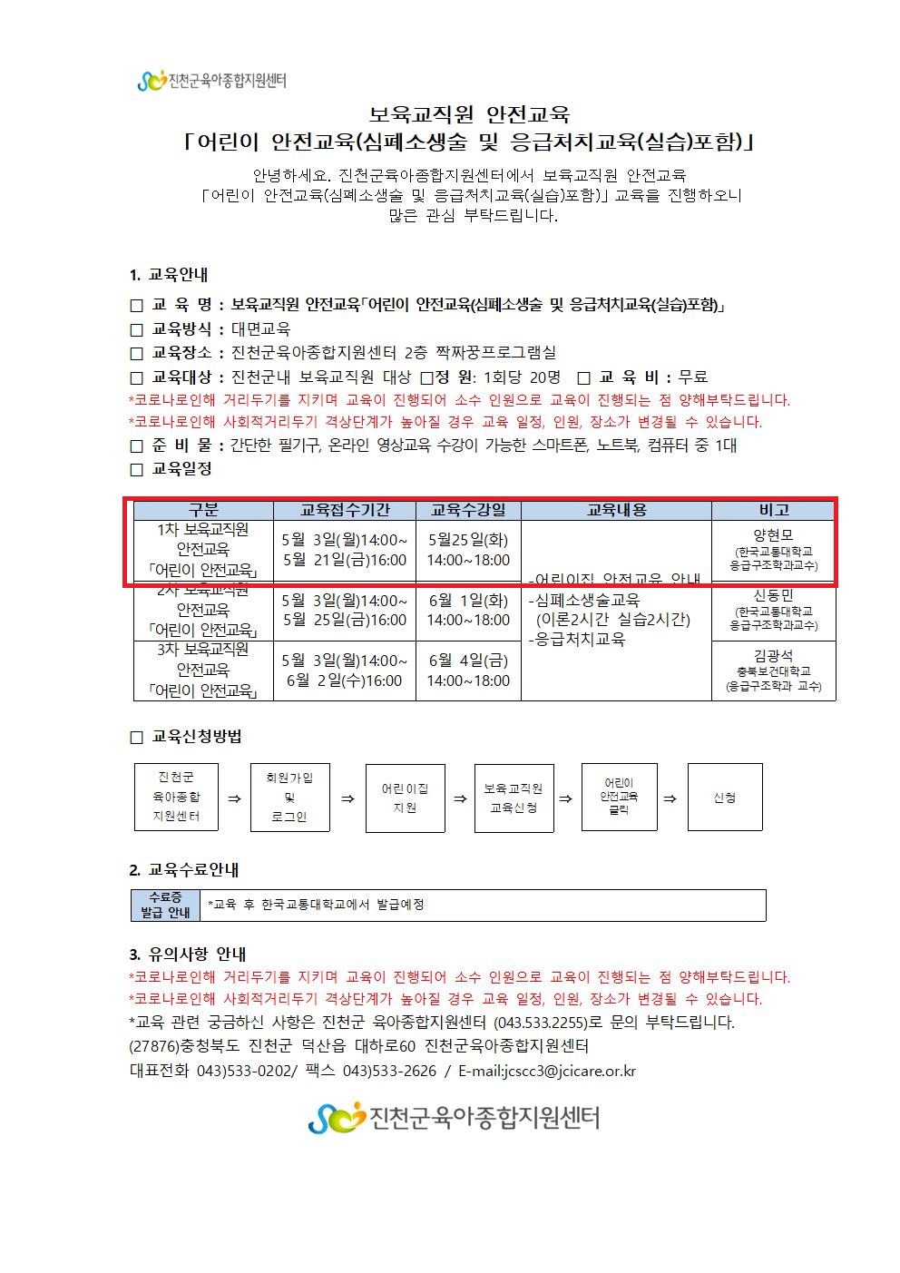 | (1ȸÂ÷) º¸À°±³Á÷¿ø ¾ÈÀü±³À° ¾î¸°ÀÌ ¾ÈÀü±³À°(½ÉÆó¼Ò»ý¼ú ¹× ÀÀ±Þóġ±³À°(½Ç½À)Æ÷ÇÔ | |||