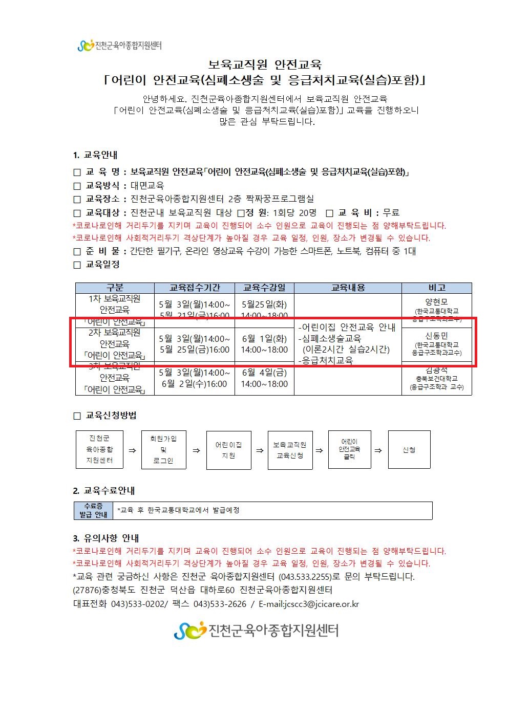 (2ȸÂ÷) º¸À°±³Á÷¿ø ¾ÈÀü±³À° ¾î¸°ÀÌ ¾ÈÀü±³À°(½ÉÆó¼Ò»ý¼ú ¹× ÀÀ±Þóġ±³À°(½Ç½À)Æ÷ÇÔ