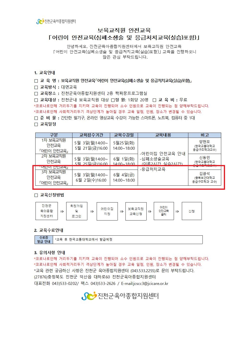 (3ȸÂ÷) º¸À°±³Á÷¿ø ¾ÈÀü±³À° ¾î¸°ÀÌ ¾ÈÀü±³À°(½ÉÆó¼Ò»ý¼ú ¹× ÀÀ±Þóġ±³À°(½Ç½À)Æ÷ÇÔ