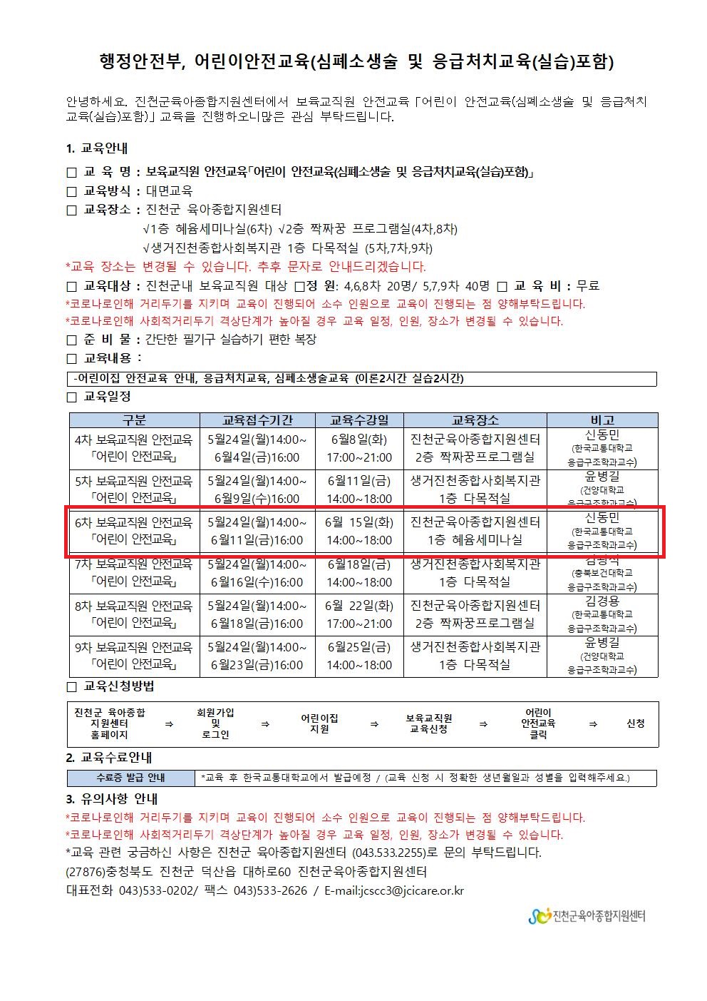 6Â÷) ÇàÁ¤¾ÈÀüºÎ, ¾î¸°À̾ÈÀü±³À°(½ÉÆó¼Ò»ý¼ú ¹× ÀÀ±Þóġ±³À°(½Ç½À)Æ÷ÇÔ)